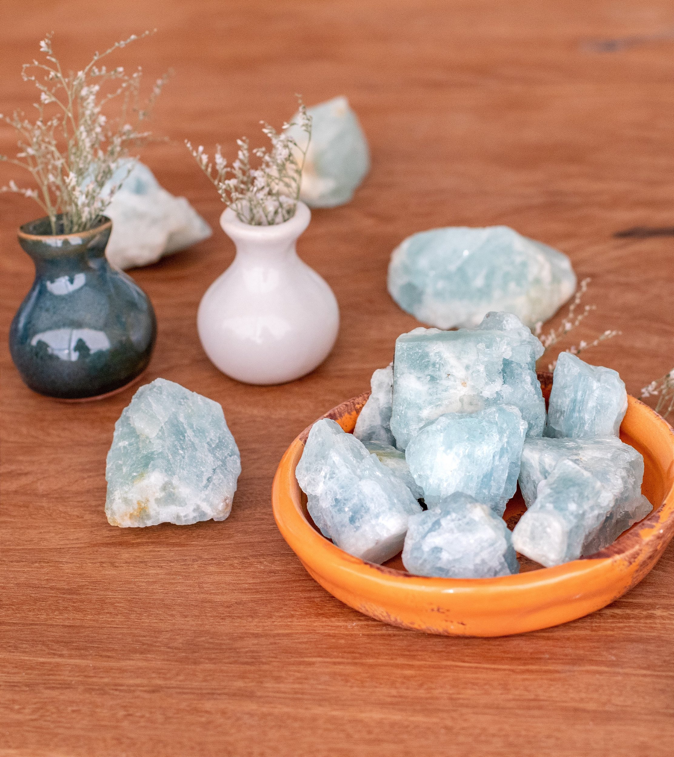 A água-marinha protege a áura e alinha os chakras, limpando o chakra da garganta e propiciando a comunicação a partir do plano superior