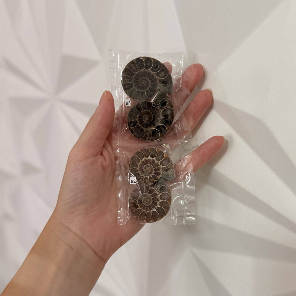 Ao longo do tempo, sua estrutura foi mineralizada, transformando-se em pedra e guardando em si a memória da Terra e das águas ancestrais. Cada amonita carrega a energia do tempo profundo, da transformação e da continuidade da vida.
