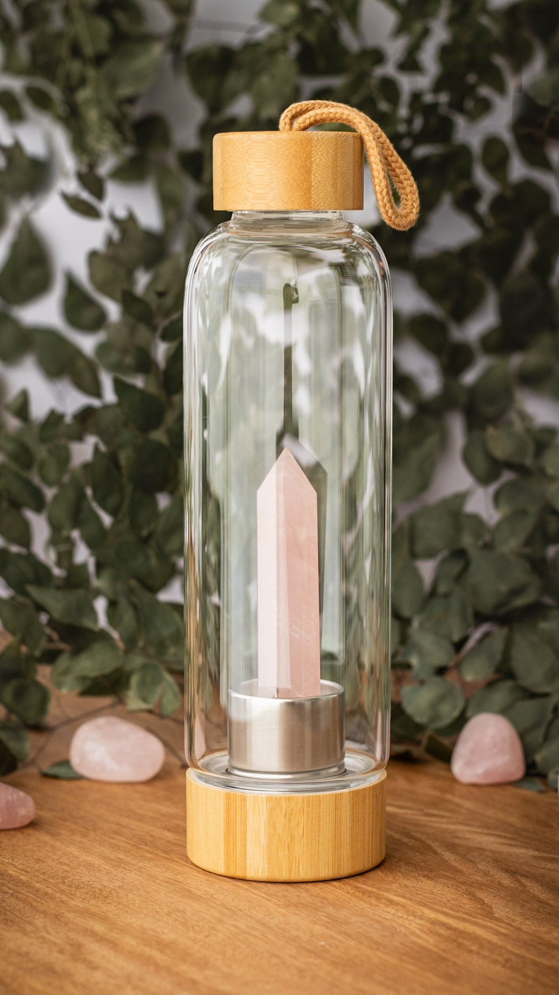 Garrafa com Ponta de Quartzo Rosa – Amor e Harmonia