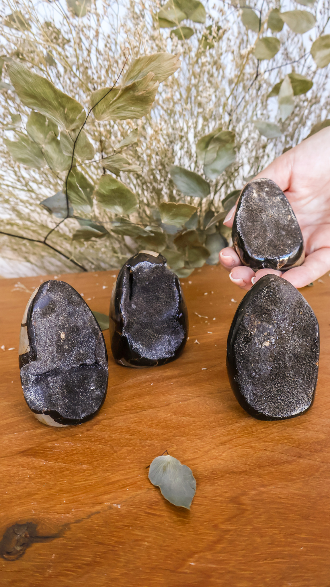 A Septariana, também conhecida como “Pedra do Dragão”, é uma formação geológica única e ancestral, composta por uma combinação natural de calcita amarela, aragonita marrom e calcário cinza, que se uniram durante milhões de anos. Seu visual rústico, com rachaduras e padrões orgânicos, revela a sabedoria do tempo e das camadas da Terra.