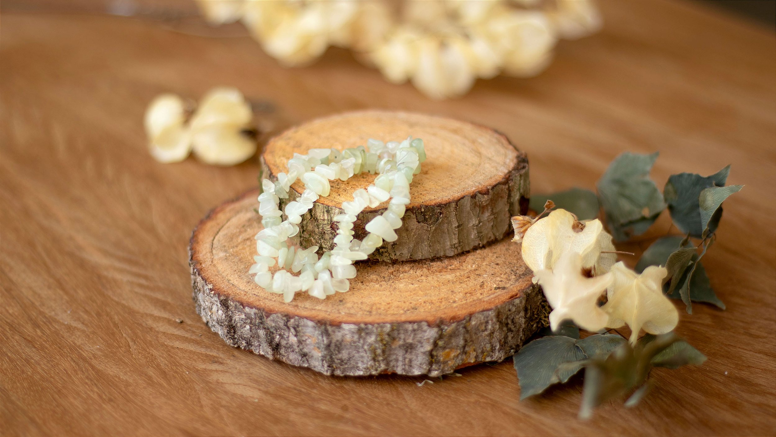 Para apoiar o equilíbrio do corpo físico e a vitalidade, combine as pulseiras de Quartzo Verde, Jade Verde, Quartzo Rosa e Peridoto — cristais que trazem regeneração, harmonia e força vital.