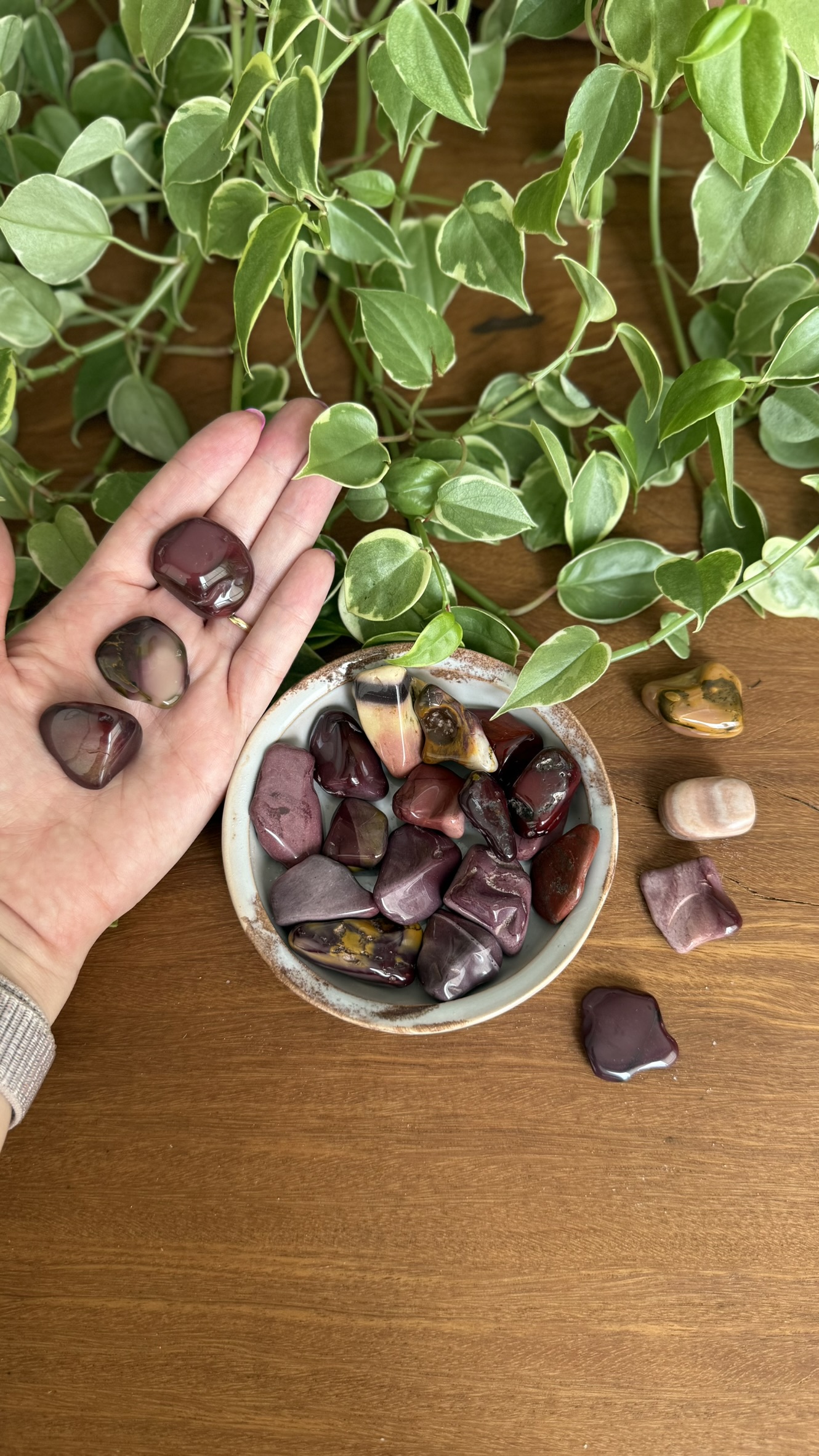 Embora todos os jaspes dialoguem com a energia da Terra e possuam similaridades com as ágatas, o Mookaite se destaca por sua diversidade vibracional: cada variação de cor e forma trabalha aspectos específicos do ser, sempre em equilíbrio entre corpo e espírito.