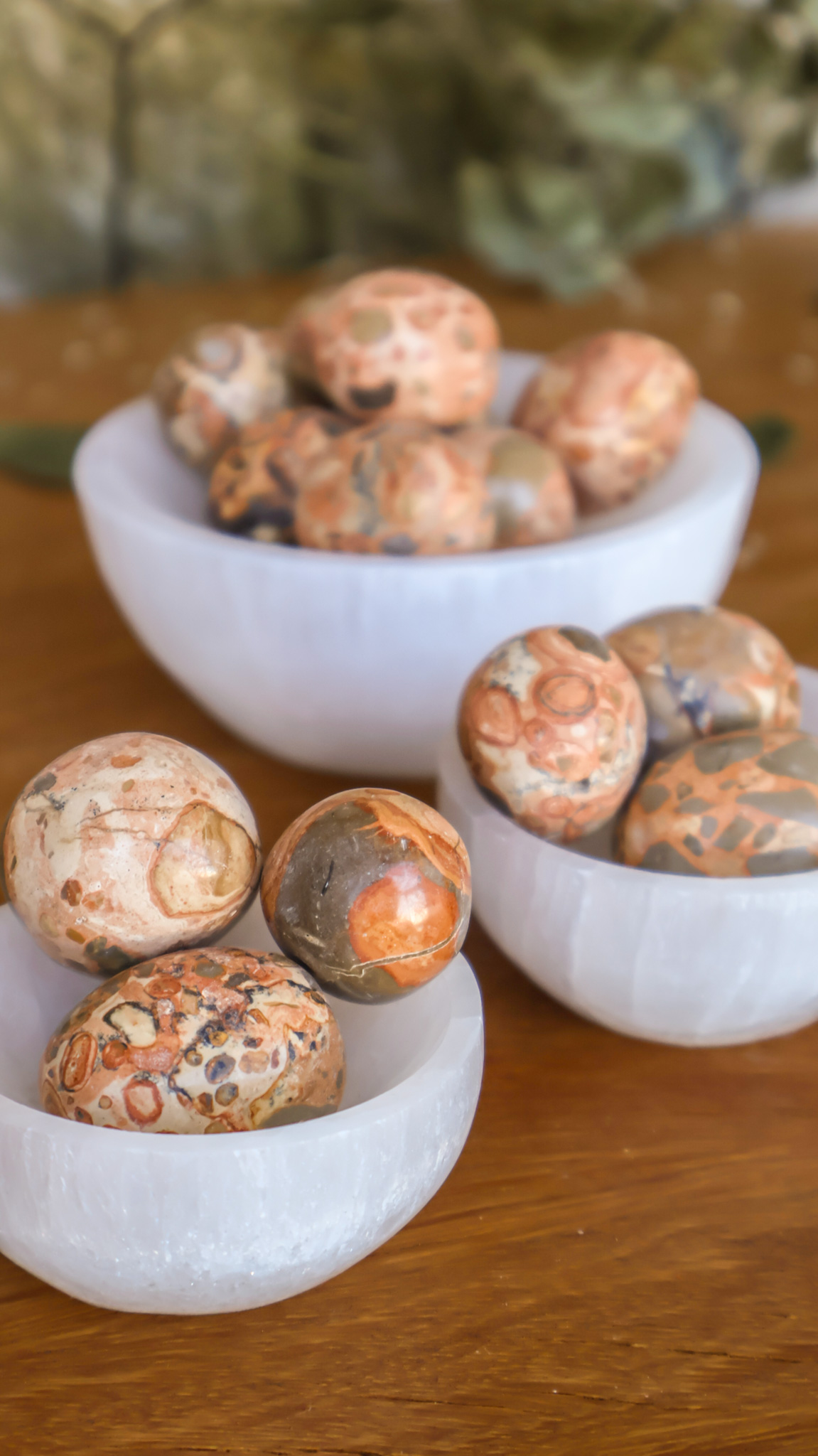 A Leopardita é um cristal que une a força da terra com a delicadeza do emocional, sendo uma aliada poderosa para quem busca equilíbrio entre ação e sentimento. Na cristaloterapia, ela auxilia na cura de traumas, no acolhimento das emoções profundas e na liberação de padrões antigos.