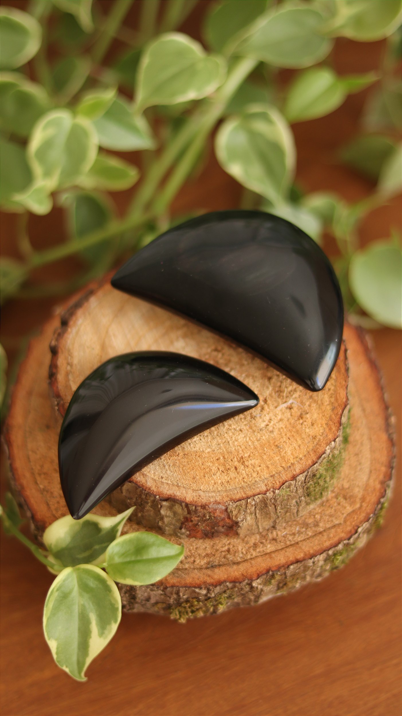 A Lua de Obsidiana é um símbolo poderoso de introspecção, limpeza profunda e conexão com os mistérios da alma. Sua forma crescente evoca a força do feminino sagrado e do ciclo da transformação, enquanto a obsidiana negra, uma pedra vulcânica de origem ígnea, atua como um espelho da alma, revelando verdades ocultas, bloqueios emocionais e padrões que precisam ser transmutados.