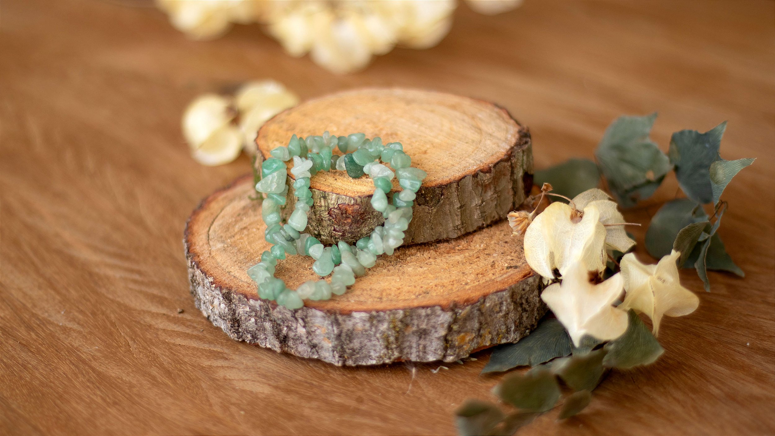 Para apoiar o equilíbrio do corpo físico e a vitalidade, combine as pulseiras de Quartzo Verde, Jade Verde, Quartzo Rosa e Peridoto — cristais que trazem regeneração, harmonia e força vital.